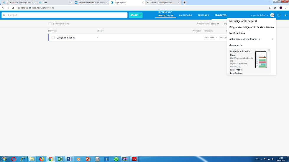 En las actividades, yo he puesto un ejemplo, en la opción de “Añadir” podemos crear otra tarea, o también podemos crear otro proyecto, al igual que añadir a más personas.